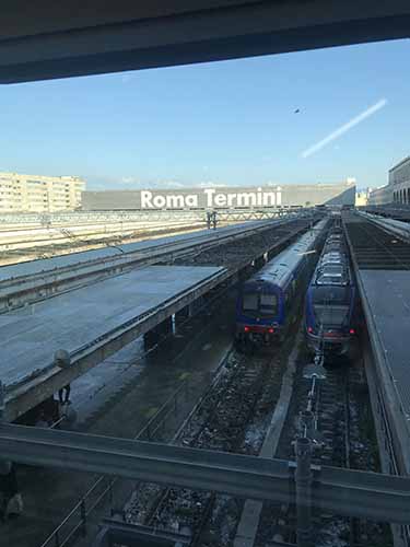 Once we arrived in Italy, it was our decision to always use public transportation, whenever possible, to avoid driving. Catching a bus from the airport seemed an easy and inexpensive way to get to the Rome train station so after collecting our luggage, we made our way to the far end of the terminal to purchase tickets and wait for our bus. Destination signs on buses here list only the areas they service which is useless if you don’t know the area. So using our new Italian word ‘termini’, we purchased our tickets and hoped they had understood that we wanted to go to the train station in Rome.