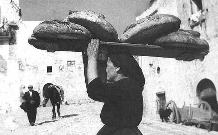 Bread was the main staple in the diets of many Italians until after the Second World War. It could keep for days, carefully stored in a wooden chest. When it was fresh, it would accompany food and most people still do this today; a little piece of bread was –and still is –used to sweep the last drop of tasty sauce off the plate –usually using your fingers. There is a special expression for this ritual : la scarpetta –literally “ the little shoe” – which actually seems to go back to the old word “scarsetta”, meaning “poverty, scarcity” because under those living conditions nothing could go to waste!