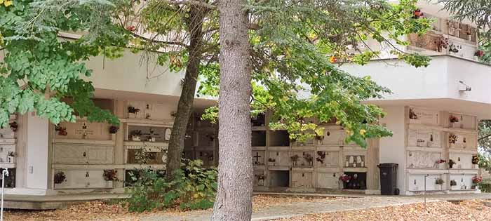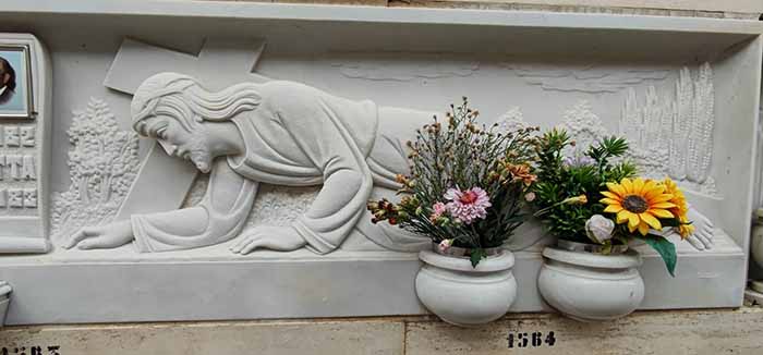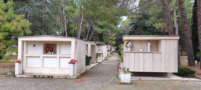 Cemeteries in Italy are quite different. They are always on the outskirts of town and graveyards around old parish churches like they have in other European countries don’t exist. No one is buried in the ground anymore. Instead, the coffins are placed in a sort of building with four or five levels, something like a “condo” made of concrete and stone, usually white marble. Every person has their name on it, dates of birth and death in addition to a photograph to make the place more recognizable. Some have a quotation from the Bible or another book. There is room for a light, a vase for flowers or some personal object.