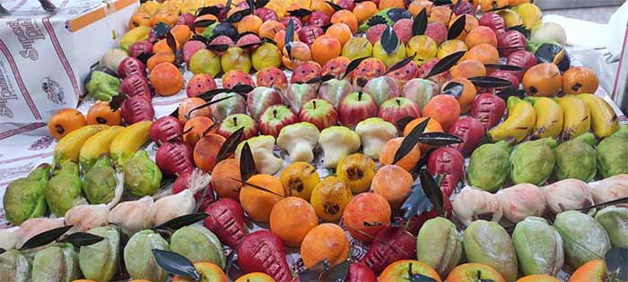 And then there is the frutta martorana. This specialty is not only delicious but a treat for the eyes as well! It is made of aromatic almond paste and sugar that is shaped and brightly colored to look like real fruits and vegetables –just miniature size. Originally from Palermo, frutta martorana got its name from a 12th century monastery where the nuns created this delicacy in the early 1800s to delight a queen or Pope (there are different stories about it…) on their visit to the city. And these nuns were the only ones to make and sell it in their convent until the mid-1900s. Now you can get it in any pastry shop in Sicily and it is also “exported” to other parts of Italy and abroad.