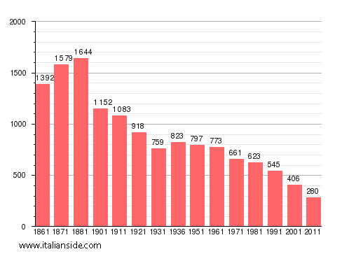 The chart below shows the demographic trends in Valle dell’Angelo from the Italian Unification (1861). Understanding how many people lived in the town over time is useful when interpreting migration and family movements.
